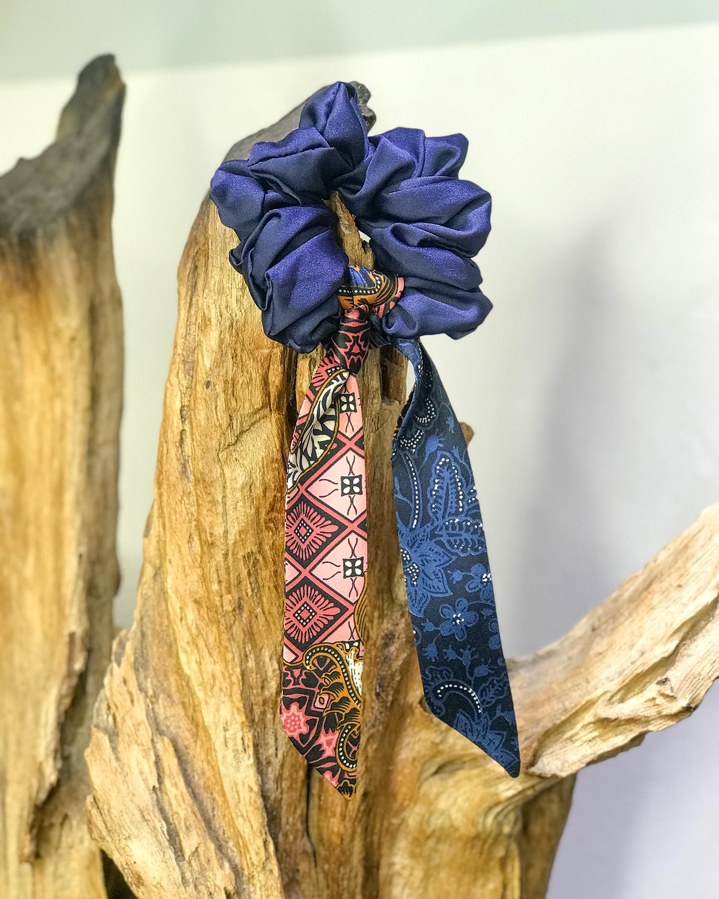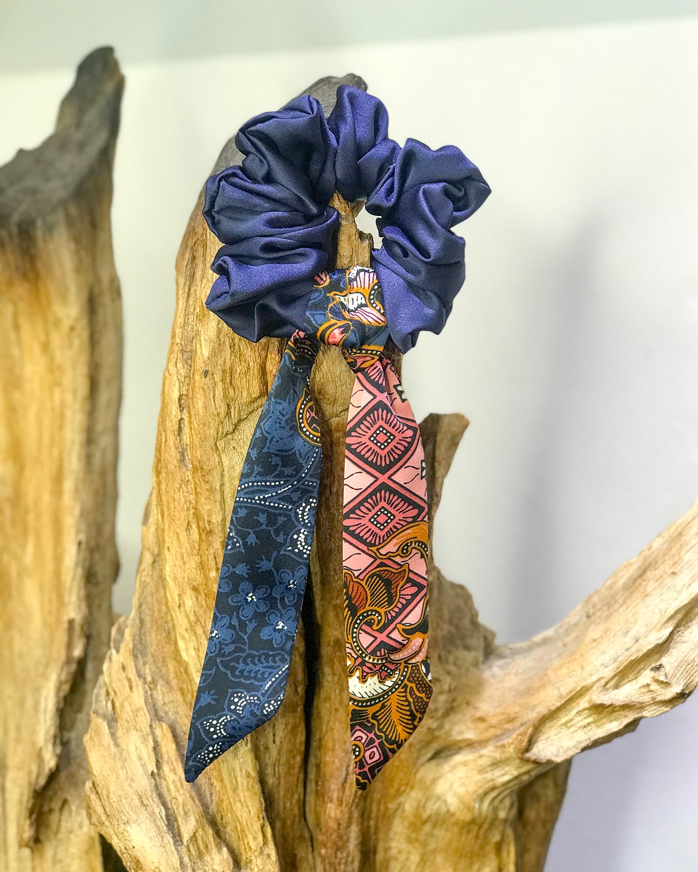Keep it easy and stylish with this soft, silky batik scrunchie in a navy colour. The smooth fabric feels comfy on your hair, while the fun batik pattern adds a relaxed, everyday vibe. Perfect for tying your hair back or wearing on your wrist for a simple pop of colour.