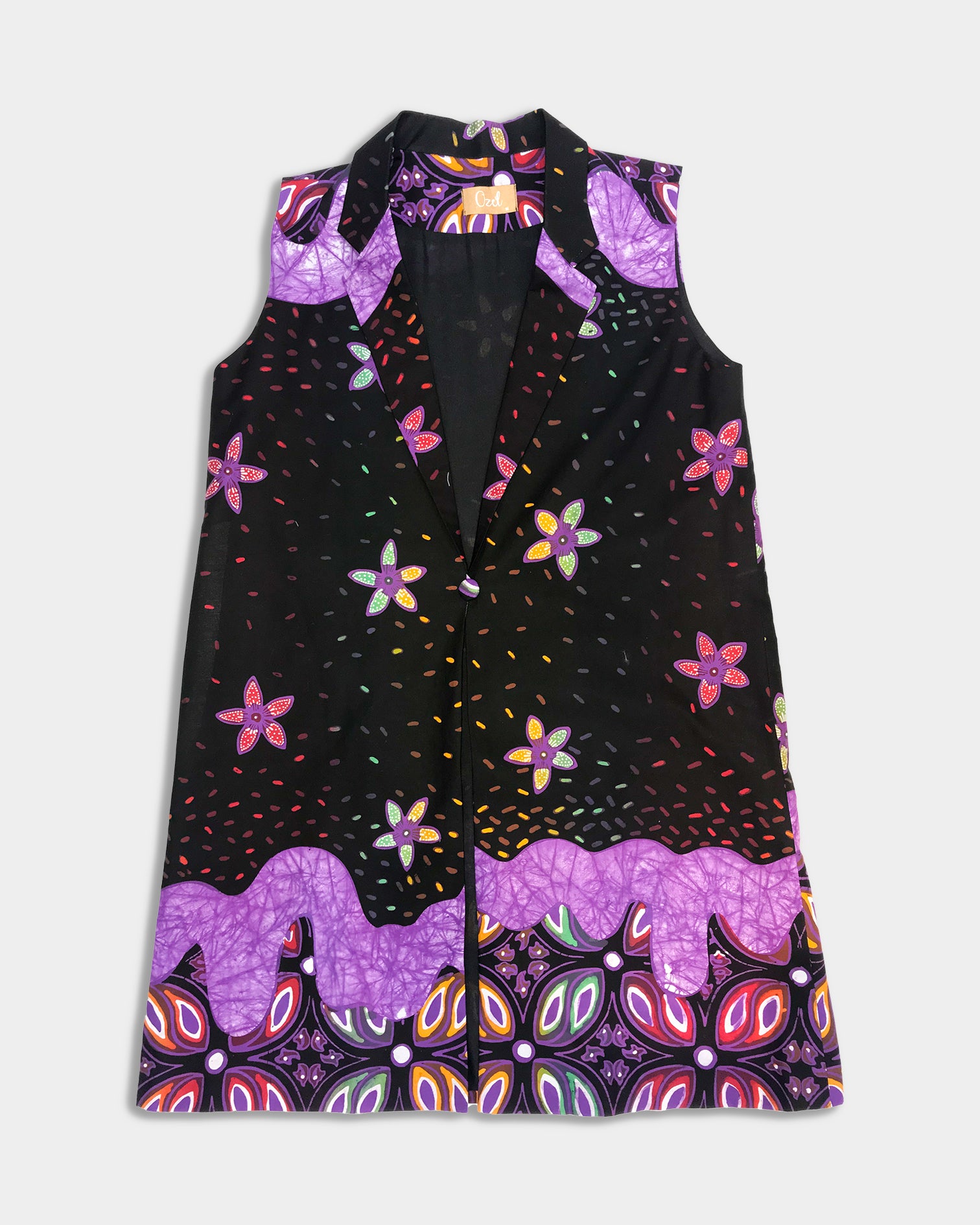 Sleeveless Peacoat, Flower Specks is a playful piece. Sparks delight and a sense of carefree wonder.